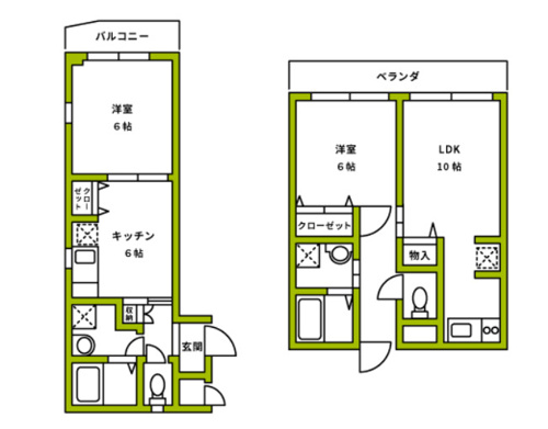1DKと1LDKの間取りの違いははこんな感じです。