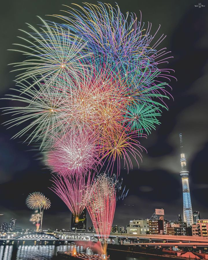 隅田川花火大会(7月下旬)首都圏最大級の花火大会で、全国から見物客が押し寄せ大変な賑わいとなる。毎年NHKや、民放各局が中継ヘリにて取材を行い、テレビ東京が特別番組を放送する。
